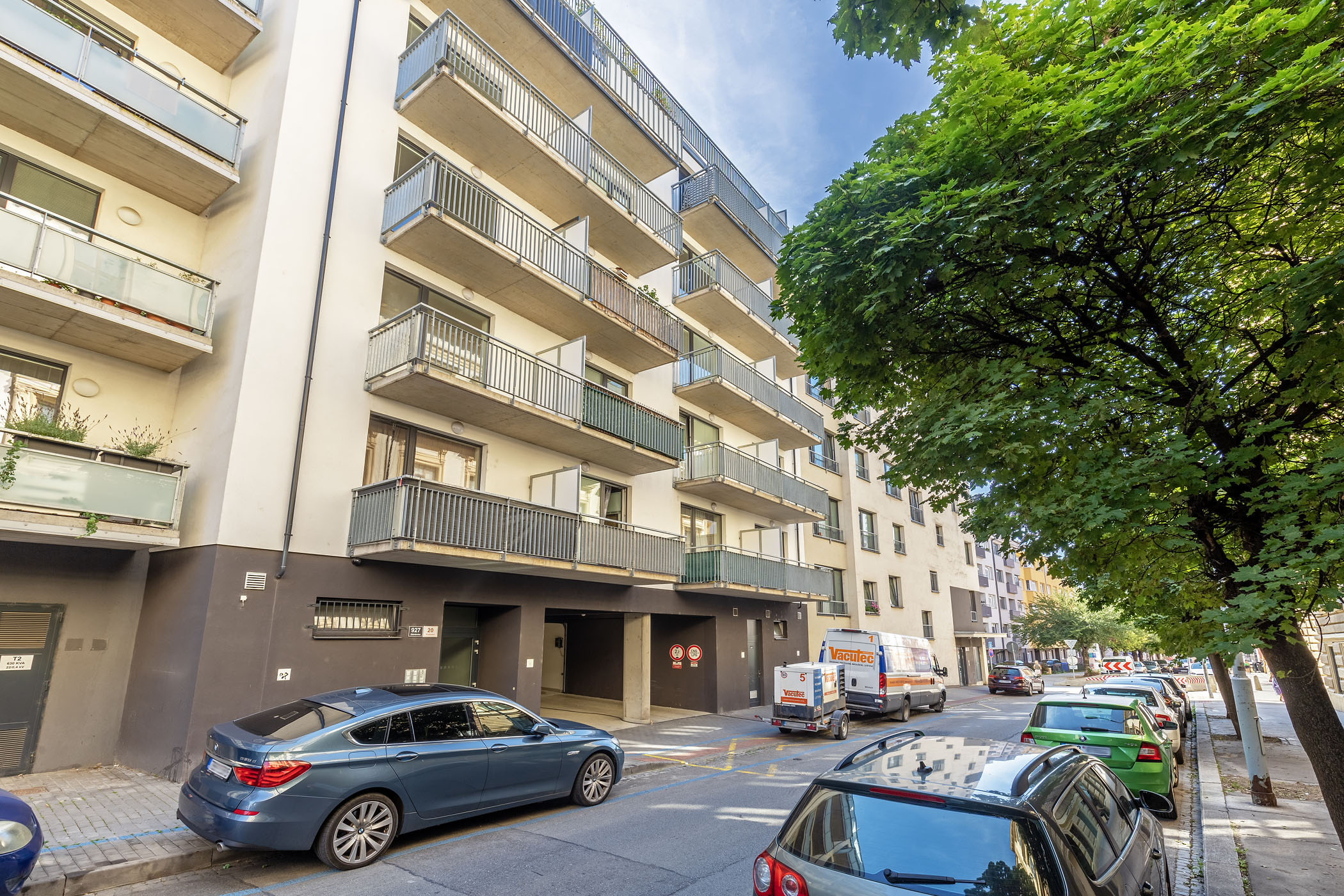 Velkým benefitem je parkovací stání přímo v objektu, a to o ploše 34 m², kam se pohodlně vejdou dvě auta. V této části města, kde je parkování často složité, jde o skutečný luxus.