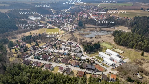- Kompletní občanská vybavenost: obchody, zdravotní péče, mateřská a základní škola