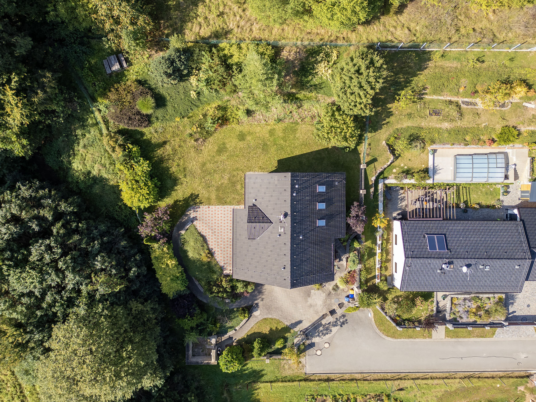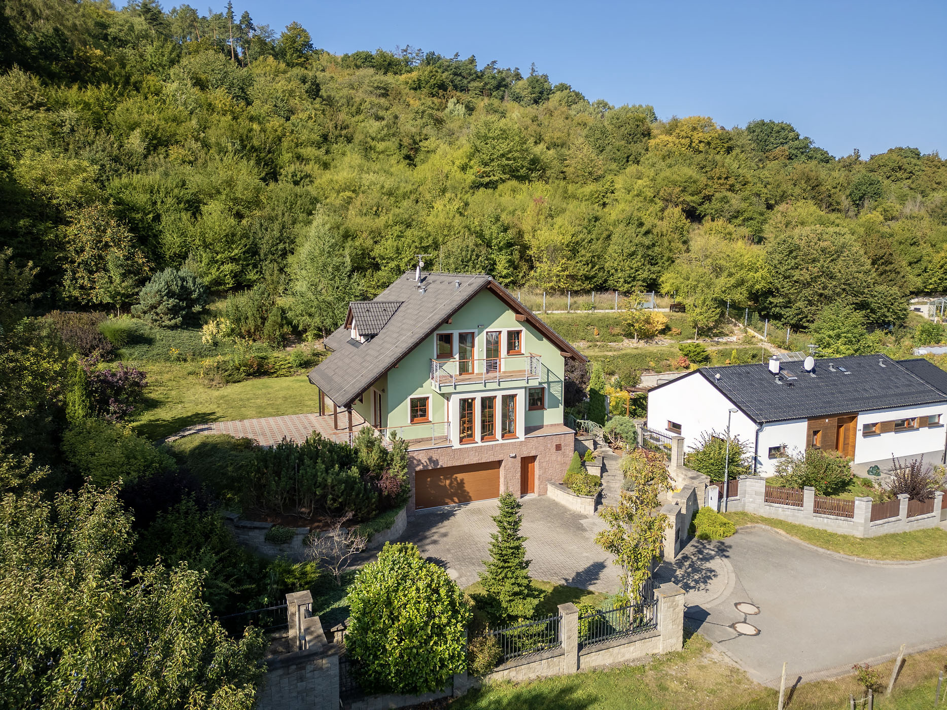 Celková výměra pozemků činí 1 078 m². Zahrada je udržovaná a poskytuje příjemné soukromí díky poloze domu na konci slepé ulice. Přímo za domem začíná les, který vybízí k procházkám, cyklovýletům i houbaření.